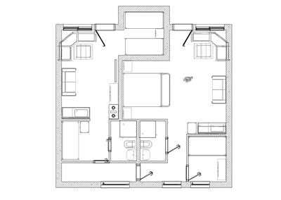 Zwei Wohnungen haben ein separates Kinderzimmer mit Stockbett. Die anderen beiden sind Einraum-Wohnungen die einem, durch ihre geschickte Aufteilung jedoch durchaus Rückzugsmöglichkeiten lassen.