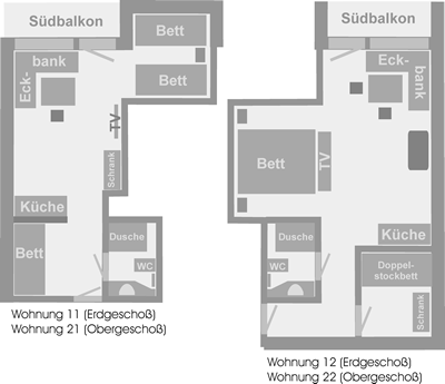 Alle vier Nichtraucher-Ferienwohnungen verfügen über:
