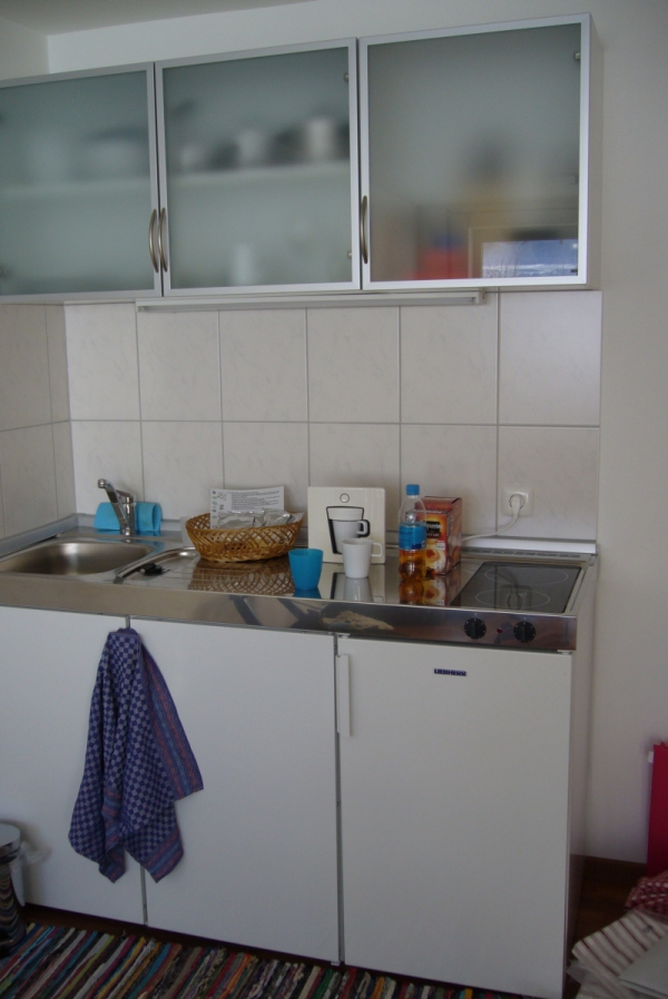 - eine gut ausgestattete Küchenzeile mit Mini-Spülmaschine, Ceranfeld, Mikrowelle und Liebherr-Kühlschrank